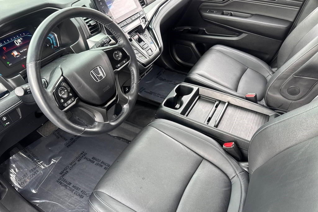 Wireless Phone Connectivity, Wheels: 19" Machine-Finished Alloy -inc: shark gray insert, Vinyl Door Trim Insert, Vehicle Stability Assist (VSA) Electronic Stability Control (ESC), Trunk/Hatch Auto-Latch, Trip Computer, Transmission: 10-Speed Automatic -inc: Shift-By-Wire (SBW) and paddle shifters, Transmission w/Driver Selectable Mode, Trailing Arm Rear Suspension w/Coil Springs, Tracker System. This Honda Odyssey has a powerful Regular Unleaded V-6 3.5 L/212 engine powering this Automatic transmission.