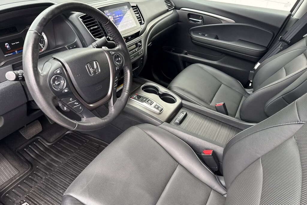 The Ridgeline is designed with practicality in mind, featuring a dual-action tailgate and an in-bed trunk that provides secure and convenient storage. The truck bed is built for versatility, making it easy to handle tools, gear, or weekend adventure equipment. Additional conveniences such as a power-adjustable driver's seat, heated front seats, tri-zone climate control, and keyless entry with push-button start enhance your driving experience.